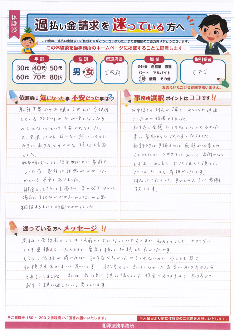 又、完済してから日にちが経っているので本当に取り戻せるのかと疑心暗鬼でした。