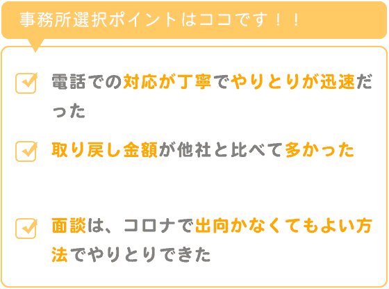 取り戻し金額が他社と比べて多かった事が最終的な決め手となりました。