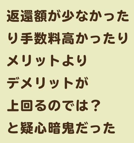 調査をしてもらっても過払い金が発生しなかった場合に手数料がかかるのではないかと思い、相談するまでに時間がかかりました。