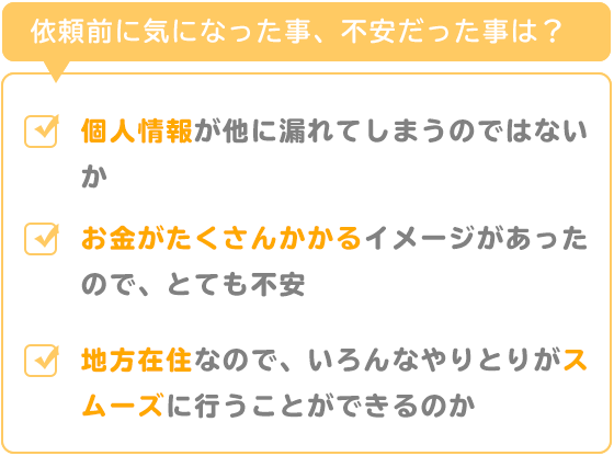 私は地方に住んでいて遠方なので、いろんなやりとりがスムーズに行うことができるのかも心配でした。