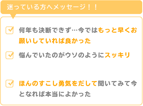 あと1つ決め手となったのは、相場より、かかる金額が低いことも、とてもありがたかったです。