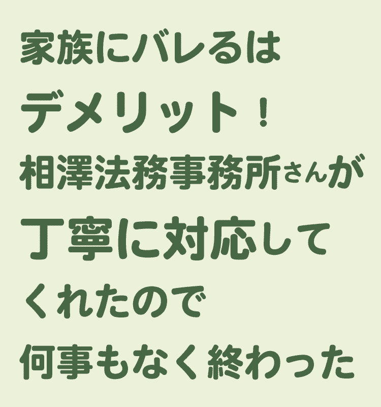 家族や親しい人に相談できず、抱え込んでいる方がいらっしゃったら、ぜひ相澤法務事務所さんの門をたたいて下さい。