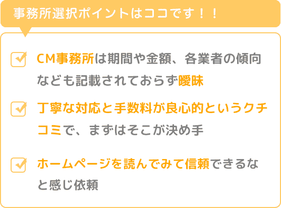 不審に思い比較サイトで調べてこちらに辿り着きました。丁寧な対応と手数料が良心的というクチコミで、まずはそこが決め手でした。