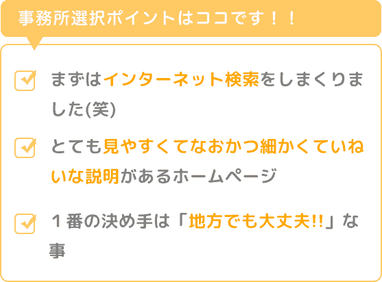 その中で検索していくつかの会社さんを見て行くうちにとても見やすくてなおかつ細かくていねいな説明があるホームページに出会ったのがこちらの事務所さんでした。