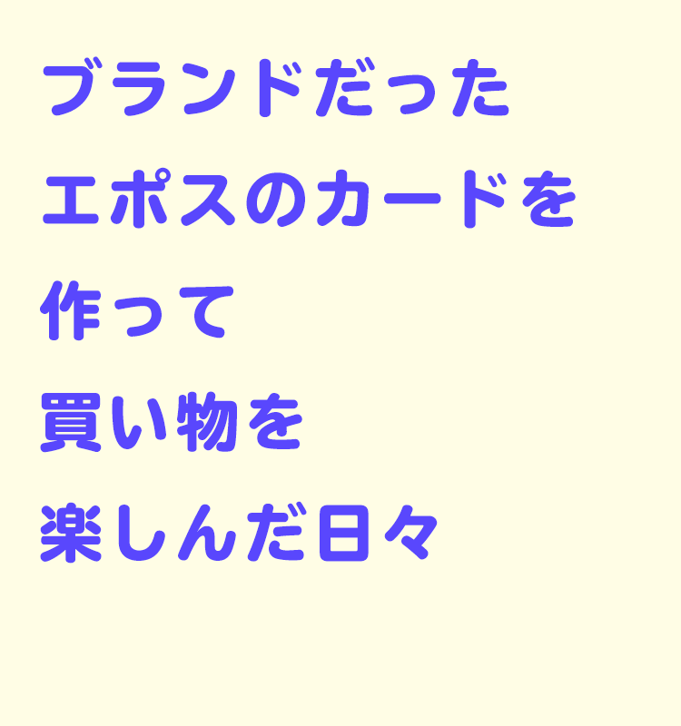 私がエポス(丸井)カードを利用したきっかけは当時、若き日の自分にとって丸井といえばファッションブランドからインテリア、雑貨、スニーカーはもちろんサーフィン、スケートボード等にいたるまでのスポーツ用品といった若者に人気のあらゆるアイテムを揃えることのできる百貨店で、買物をするのにも便利なうえ、いろいろなところにキャッシュディスペンサーも設置されており、キャッシングのしやすい比較的簡単につくることができる、とても魅力的なクレジットカードだったからです。
