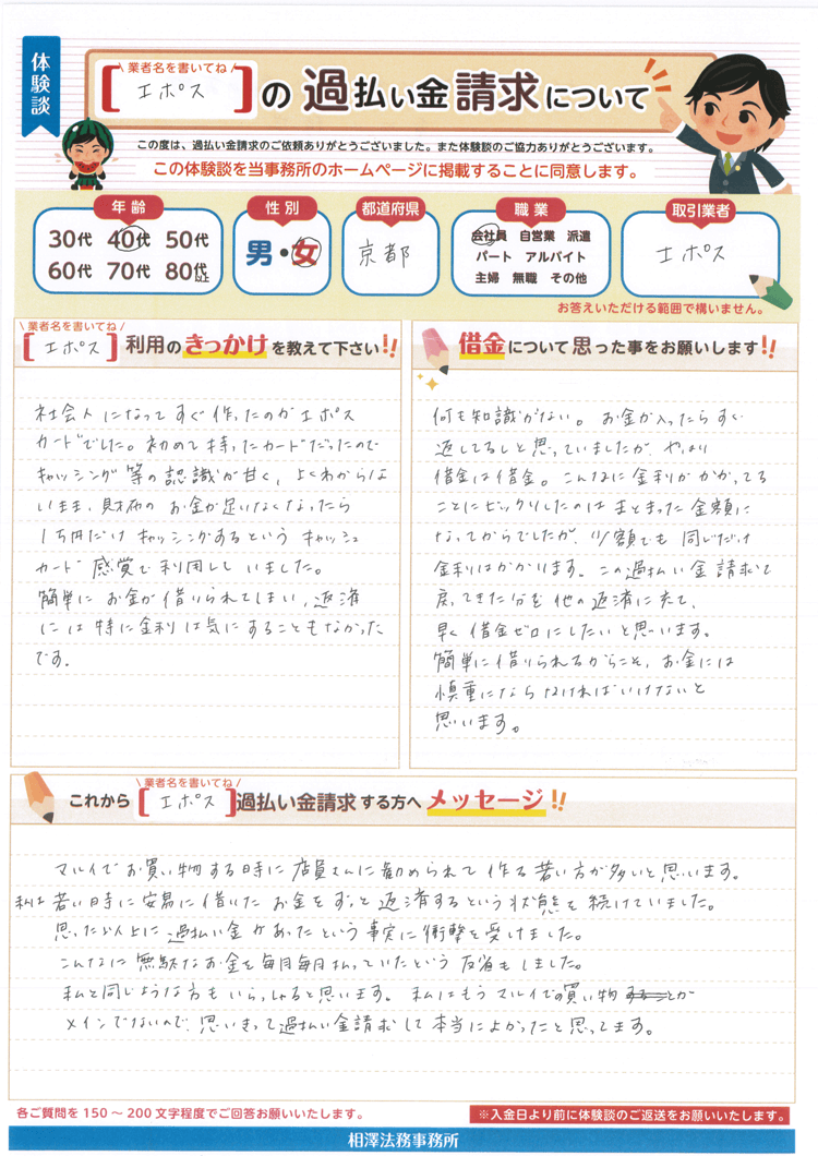 この過払い金請求で戻ってきた分を他の返済に充て早く借金ゼロにしたいと思います。
