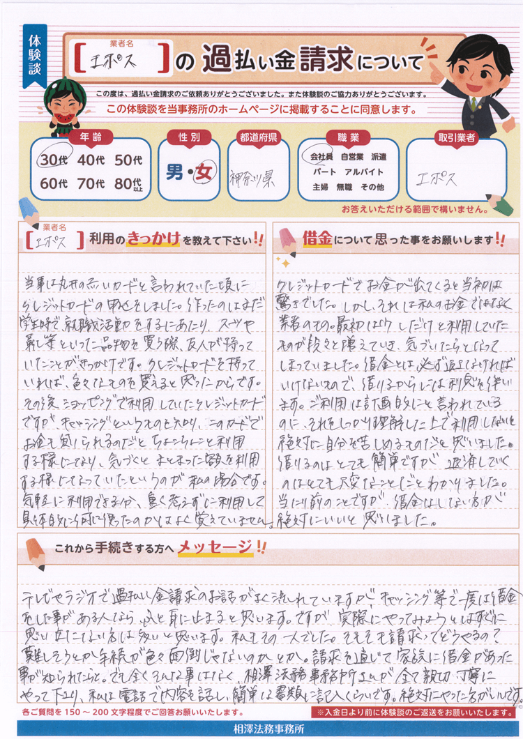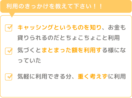 最初は少しだけと利用していたものが段々と増えていき、気づいたらとなってしまっていました。