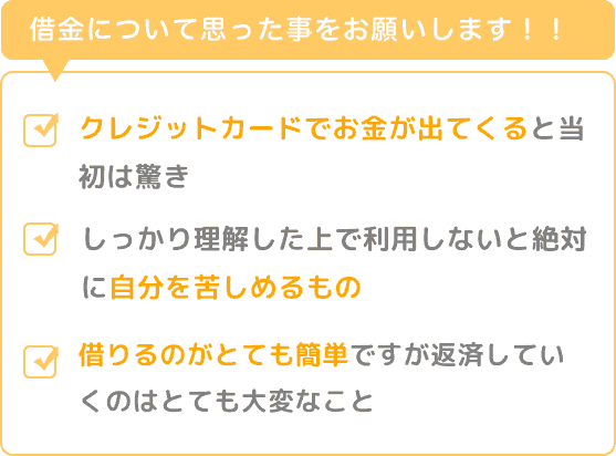 借りるのがとても簡単ですが返済していくのはとても大変なことだとわかりました。