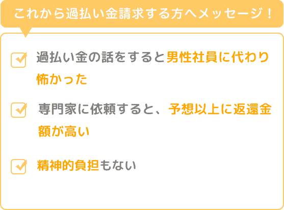 専門家に依頼すると費用は発生しますが、予想以上に返還される金額が高いことと精神的負担もないので、一度相談されてはいかがでしょうか。