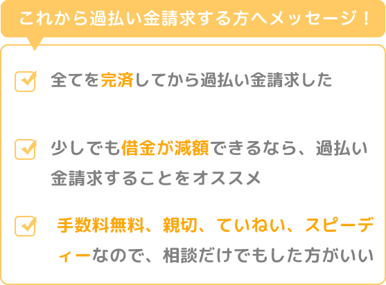 私の場合は、全てを完済してから請求しましたが、少しても減額があるのであれば、いち早く、過払い金請求することをオススメします。