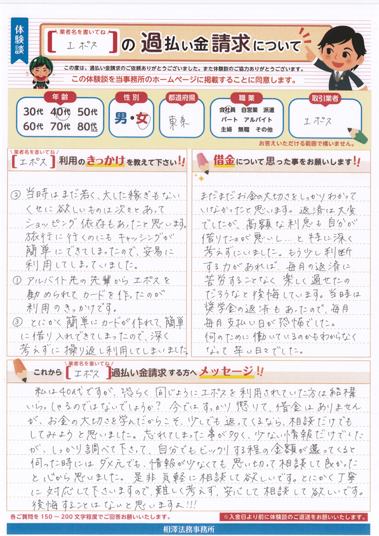 今ではすっかり懲りて、借金はありませんが、お金の大切さを学んだからこそ、少しでも返ってくるなら、相談だけでもしてみようと思いました。