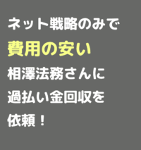 ネット戦略のみで費用の安い相澤法務さんに過払い金回収を依頼!