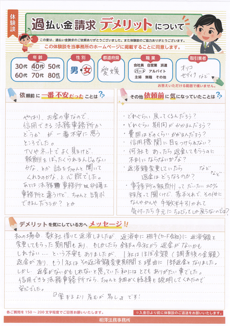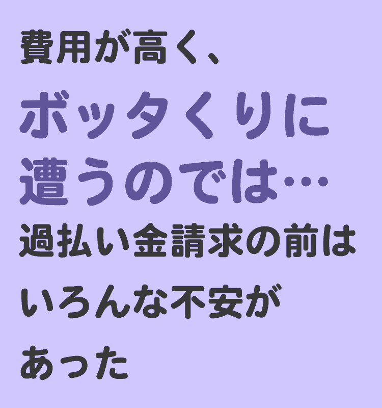 TVやネットでよく見るけど、報酬をぼったくられるんじゃないかな、とか話をちゃんと聞いてくれるのかな、と心配でした。