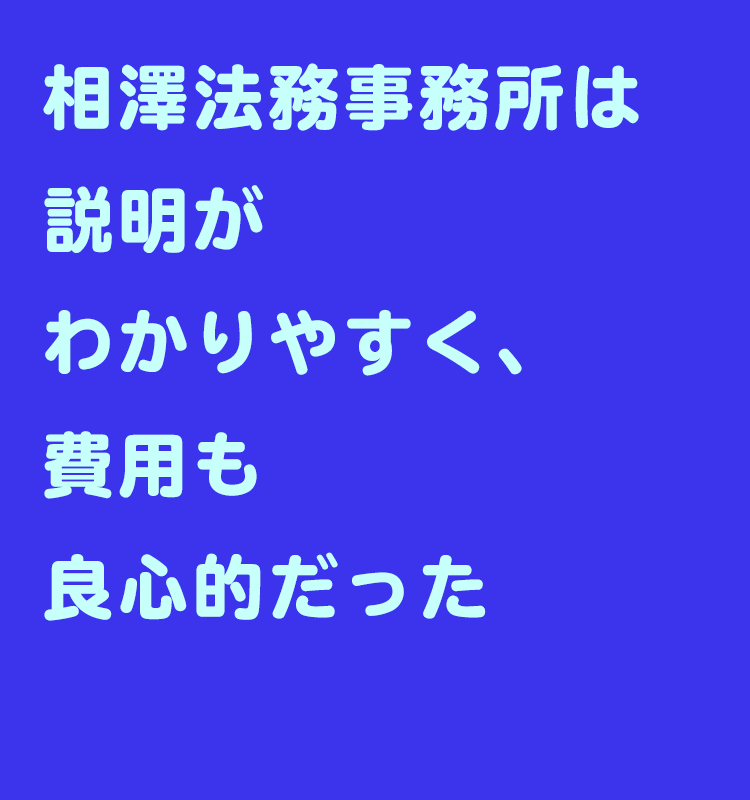 相澤法務事務所は説明がわかりやすく、費用も良心的だった