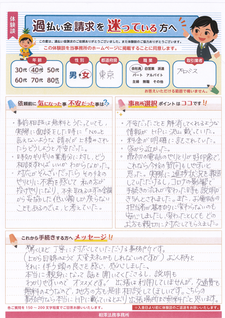 相澤法務を選んだ理由は、費用の安さ。そして依頼者ファースト