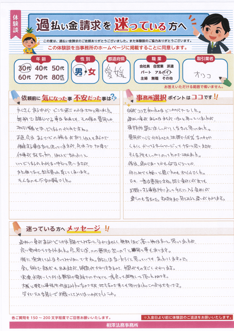 相澤法務を選んだ一番の理由は費用。他事務所と比べて納得感