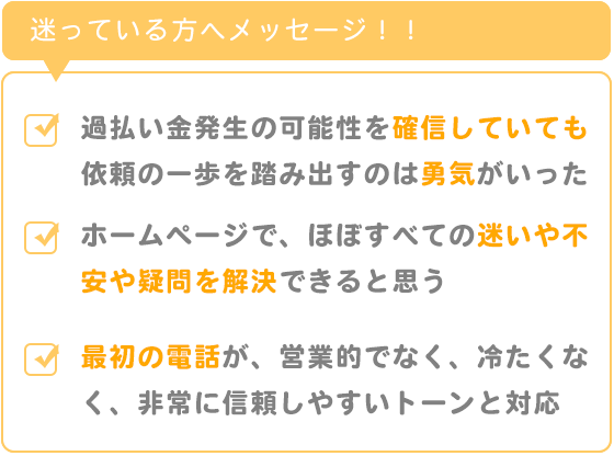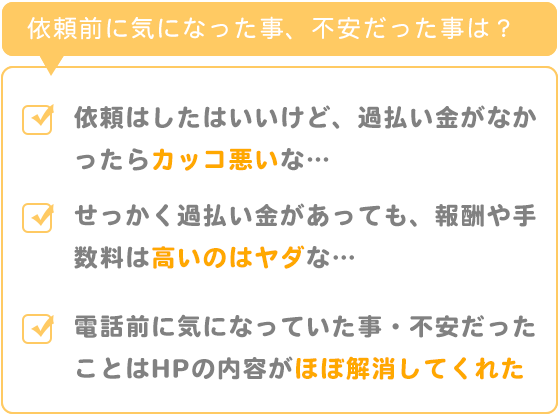 依頼前、いざ依頼はしたはいいけど、過払い金がなかったらカッコ悪いなと、単純にまずは思いました。