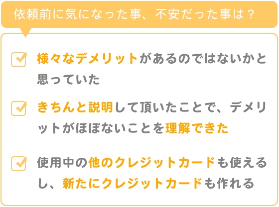 また、新たにクレジットカードが作れなくなるといったこともないのが理解できてよかったです。
