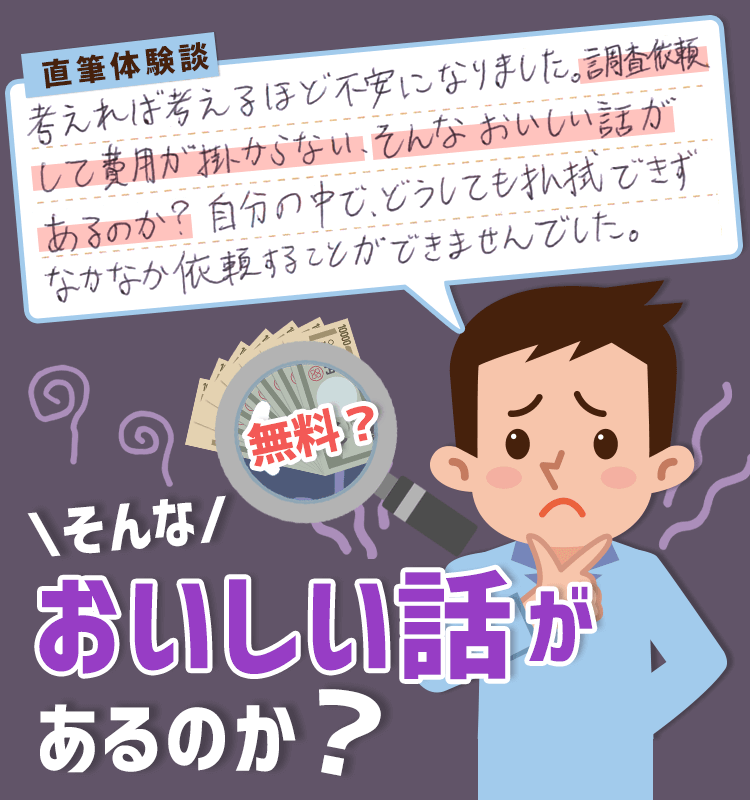 | 一切なし! | ありません。当たり前ですが、ご依頼いただいて損はありません。 |