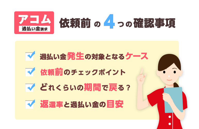 こちらは、そんなアコム過払い金請求の発生条件や依頼前チェックポイントがわかるページです。