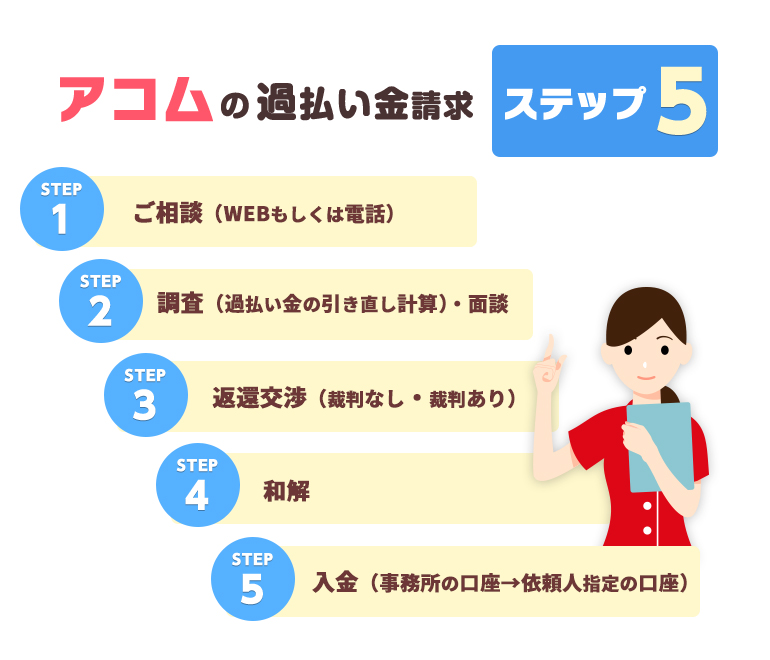 アコムの過払い金がどのような経過を経て戻ってくるのかご説明します。