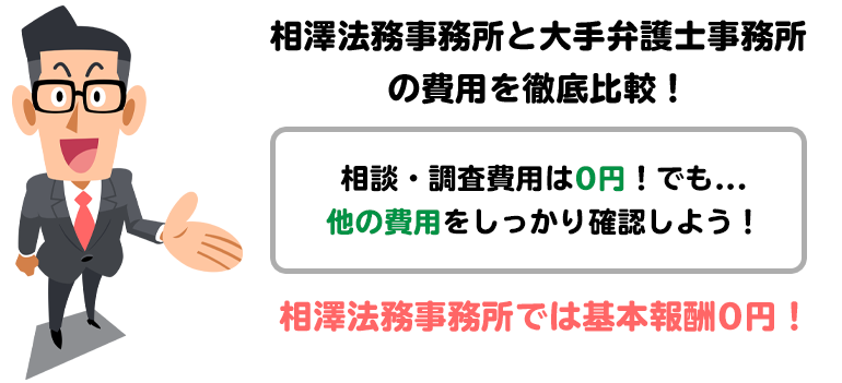 参考までに、相澤法務事務所と、テレビCMなどでよく耳にする大手法律事務所の報酬を比較してみましょう。