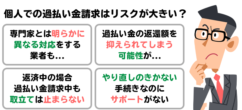 複雑な算式を用いなければ過払い金の算定ができないような業者などはとくに、専門家に依頼するほうが安心であり、リスク軽減につながります。