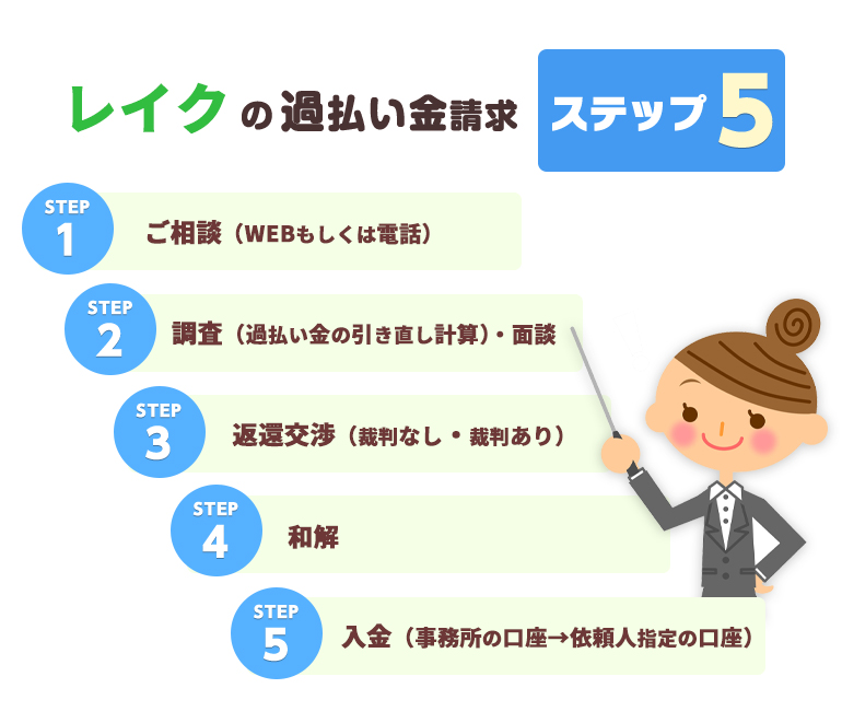 レイクの過払い金がどのような経過を経て戻ってくるのかご説明します。