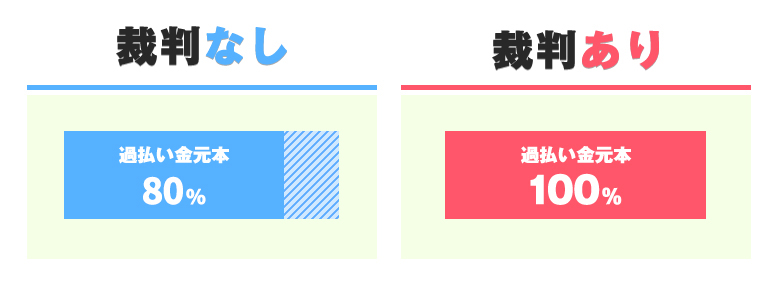 ● 裁判なし:過払い金元本の80%