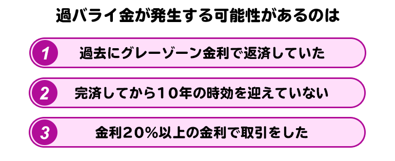 長く返済を続けている人の中には、知らないうちにグレーゾーン金利で返済をしていて、過バライ金がある人が数多くいます。