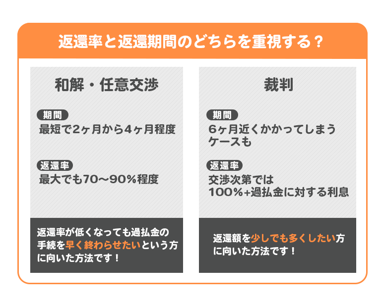 返還期間は和解・任意交渉したほうが早くなります。