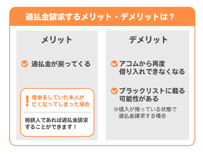 ここからは、過払金請求するメリット・デメリットについて詳しく紹介していきます。