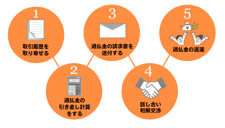 過払金請求をする時は、まず過払金の額を把握し、貸金業者との交渉または裁判を通して返還してもらうという流れになります。