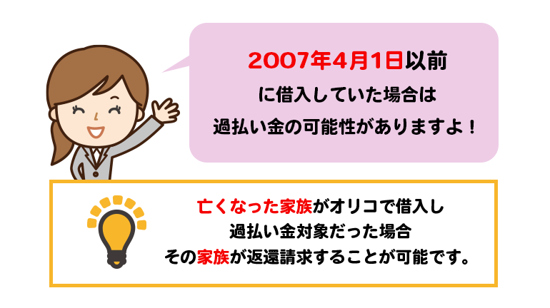 オリコから借入していた場合、2007年以前の借金で過払金が発生している可能性があります。