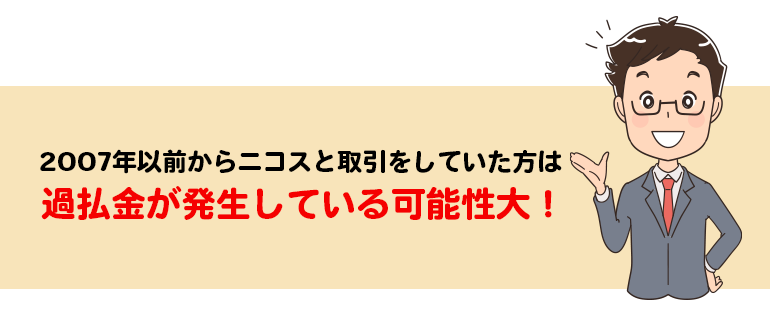 2007年以前からニコスと取引をしていた人は、過払金が発生していることが考えられます。