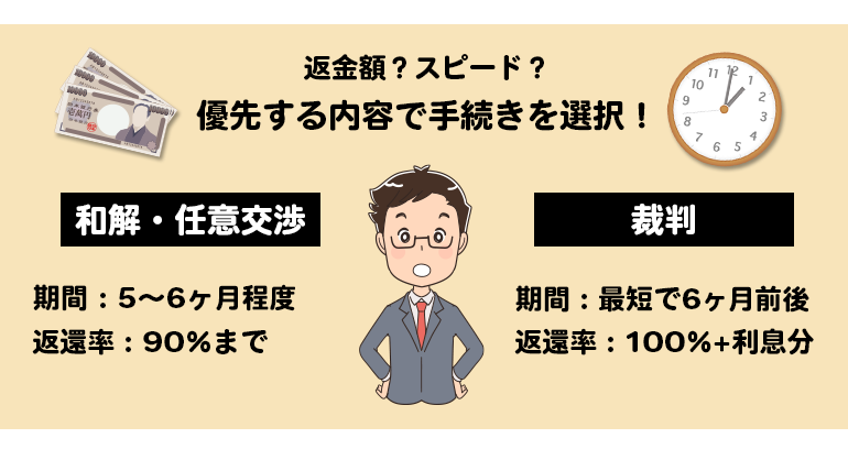 返金されるお金の額を優先するか、お金が返ってくるまでのスピードを優先するかは、手続きのやり方を選ぶ際のポイントです。
