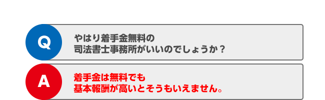 司法書士会ルールでは、規定の報酬以外の請求は禁止しているため、着手金を請求する司法書士事務所はありません。