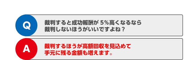 また、成功報酬の金額は、訴訟する・しないで5%もの開きがあります。