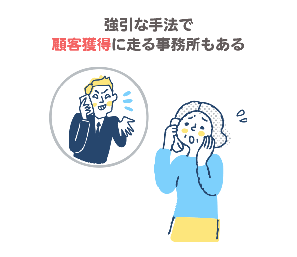 実際、「費用が15万円もかかると言われた」「50万円損するところだった」「しつこく営業されて嫌な気持ちになった」という方が、当事務所を訪れてきました。