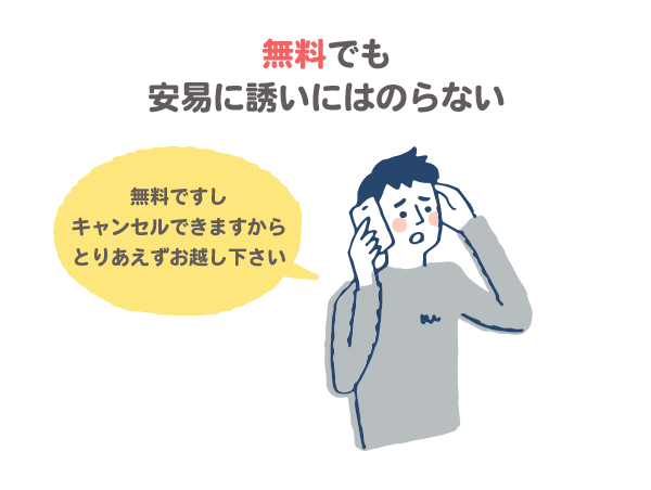 来所してからはじめて分かった費用について、「そんなにする?」「何かあやしい」「この料金何?」と思うようなところがあれば、キャンセルしても問題ありません。