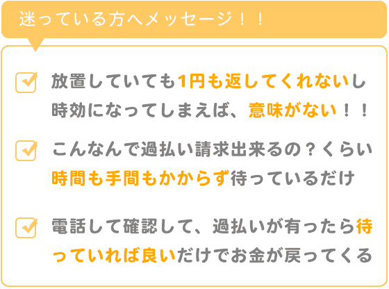 とにかく、電話して、確認して、過払いが有ったら、待っていれば良いだけで自分のお金が戻ってくるのだから、とにかく一度電話をしてみればスッキリすると思います。