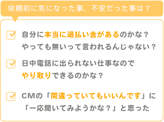 まず初めに過払い金を調べるときに思ったのは「自分に本当に過払い金があるのかな?」「やっても無いって言われるんじゃないかな?」というのが第一印象でした。