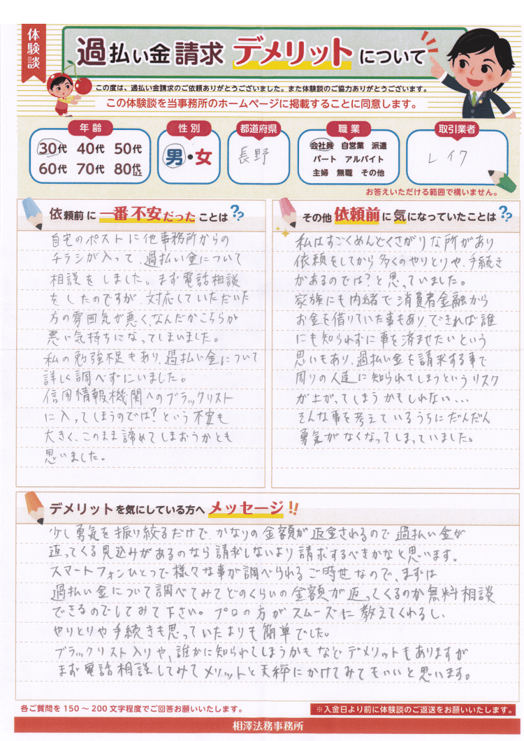 自宅のポストに他事務所からのチラシが入って、過払い金について相談をしました。