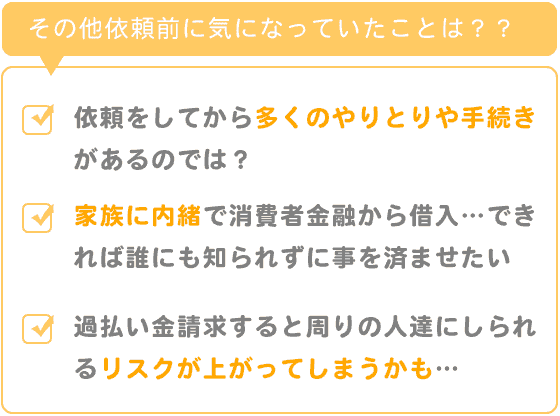 家族にも内緒で消費者金融からお金を借りていた事もあり、できれば誰にも知られずに事を済ませたいという思いもあり、過払い金を請求する事で周りの人達にしられてしまうというリスクが上がってしまうかもしれない…そんな事を考えているうちにだんだん勇気がなくなってしまっていました。