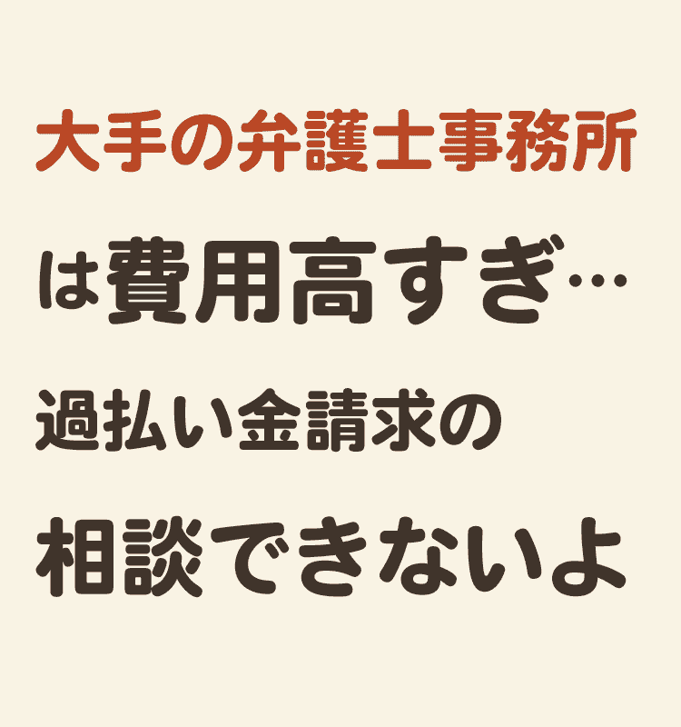 大手の弁護士事務所は費用高すぎ…過払い金請求の相談できないよ