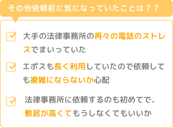 相澤法務事務所さんに依頼して心配や不安は少しも感じませんでした。