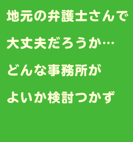 大手の法律事務所の再々の電話のストレスでまいってましたがもっと良心的な安心して頼めるところがないかさがそうと思いました。