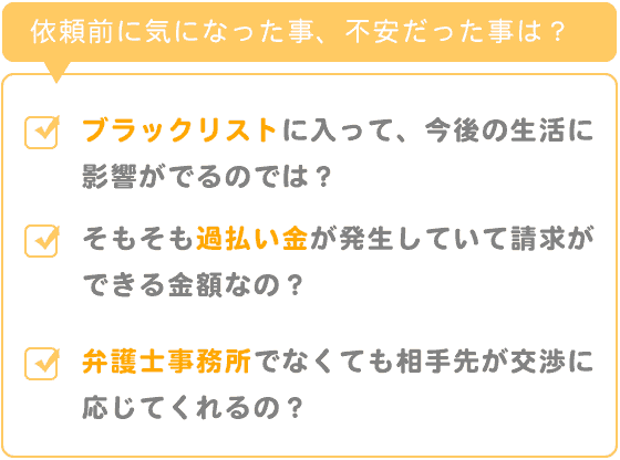①依頼をすることで金融機関等のブラックリストに入って今後の生活に影響がでるのではないか?