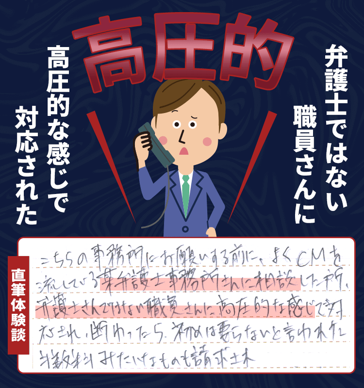 過払い金請求…弁護士でもない職員が高圧的…どこも同じなの?