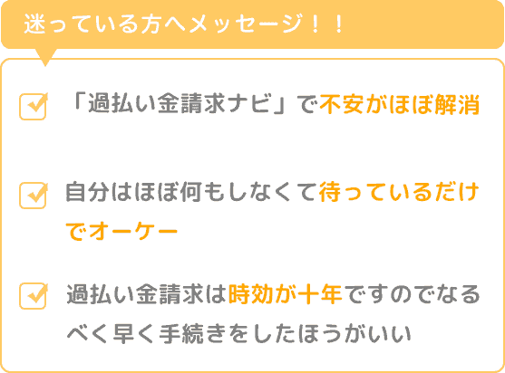 私がまた過払い金請求を依頼してみようと思ったのは「過払い金請求ナビ」に疑問に思っていた事不安に思っていた事が網羅されていて不安がほぼ解消されたからです。